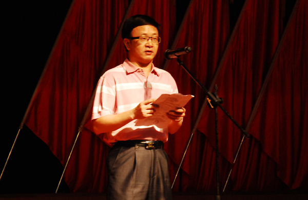 91487部队傅志新政委代表全体官兵致欢迎词。傅政委在欢迎词中表达了对我校组织策划的部队慰问演出活动表示热烈的欢迎和衷心的感谢。傅政委并衷心地祝愿91487部队与湛师的友谊天长地久、湛师的明天更美好。