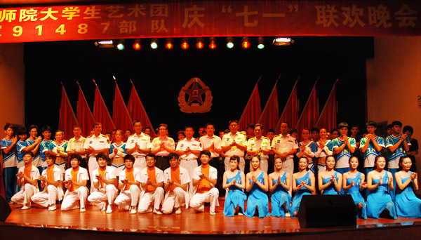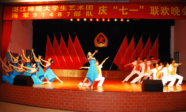 湛师新闻网6月28日讯 深情传递厚意,歌声唱响祝福。为了迎接我们伟大的中国共产党90岁生日,恰逢七一之际,我校李江凌副院长、校团委李粤书记、李发武副书记一行带领我校大学生艺术团带着深厚情谊和精彩节目来到91487部队与部队官兵们同台演出、共叙友情,受到了91487部队慈晓东大队长、傅志新政委及部队全体官兵的热烈欢迎。
