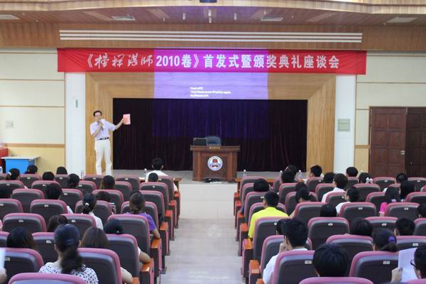 湛师新闻网6月27日讯 23日下午,学生工作处在图书馆学术报告厅举行了《榜样湛师2010卷》首发式暨颁奖典礼座谈会。学生处黄达海处长、“榜样湛师”2010年度全体获奖者、颁奖典礼工作团队成员、演职人员,助理班主任代表以及各二级学院“榜样”培养对象等参加了此次座谈会。
