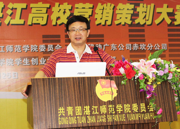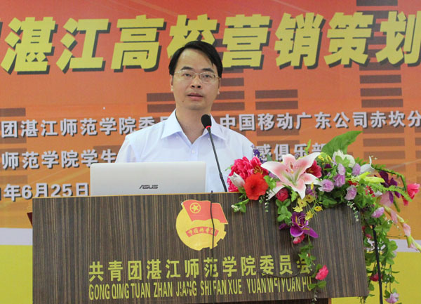 湛师新闻网6月27日讯 25日,由校团委、中国移动广东公司赤坎分公司主办的2011动感地带第三届湛江高校营销策划大赛总决赛在我校弘雷楼311室举行。我校李江凌副院长、校团委李粤书记,中移动湛江分公司人力资源部彭革文总经理、中移动赤坎分公司林华扬总经理、中移动湛江分公司数据业务中心洪东文副总经理出席了本次活动。