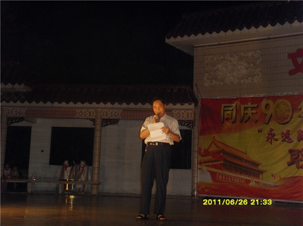 湛师新闻网6月27日讯 昨晚,我校教科院党委与赤坎区寸金街道党工委、寸金公园党支部、湛江市文强书社在寸金公园文化广场联合举行了“永远跟党走”庆祝建党90周年联欢晚会。原湛江市广播电视局局长、湛江市文强书社曲艺团团长成迪春、湛江市文强书社常务黄保全副理事长、寸金公园管理处叶跃华主任、我校教科院党委王列盈书记、郭和才副书记、辅导员卢祖琴老师出席了本次晚会。广场上聚满了观众,热闹非常。