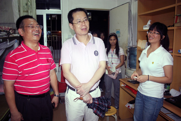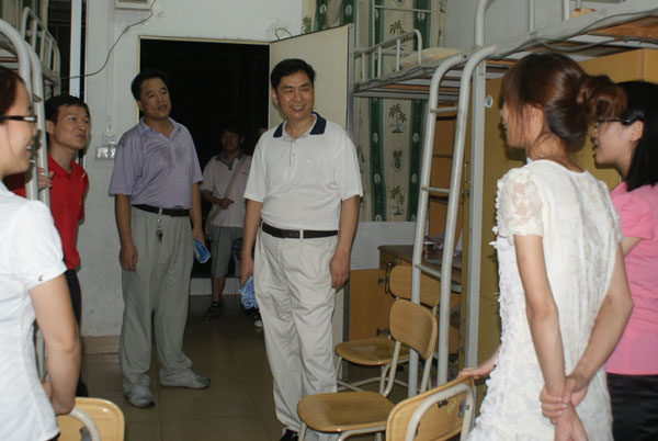 湛师新闻网6月24日讯 在07级毕业生即将离校之际,6月22日至23日晚,音乐学院、法政学院、人文学院领导老师分别走访了毕业生宿舍。