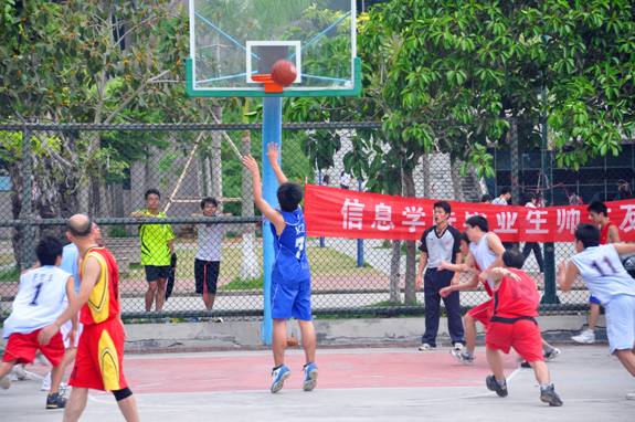 湛师新闻网6月24日讯 为欢送2011届毕业生,6月22日下午,信息学院教工男子篮球队与由2011届毕业生组成的篮球队在雷阳区3号篮球场举行了一场师生友谊篮球赛。信息学院党委林汉书记、林荣新副书记,全体辅导员、教师代表以及毕业生代表观看了比赛。