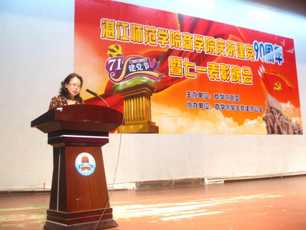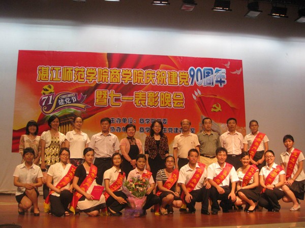 湛师新闻网6月23日讯 为庆祝中国共产党建党90周年,重温党的光辉历史,6月20日,商学院党委在音乐厅举行大型七·一表彰晚会。校党委组织部邓妍妍部长、商学院党委吴进书记、王亚新院长、党委梁晋副书记、夏青副院长、党委委员刘海英老师及辅导员张彦老师、董芬老师等出席了晚会。