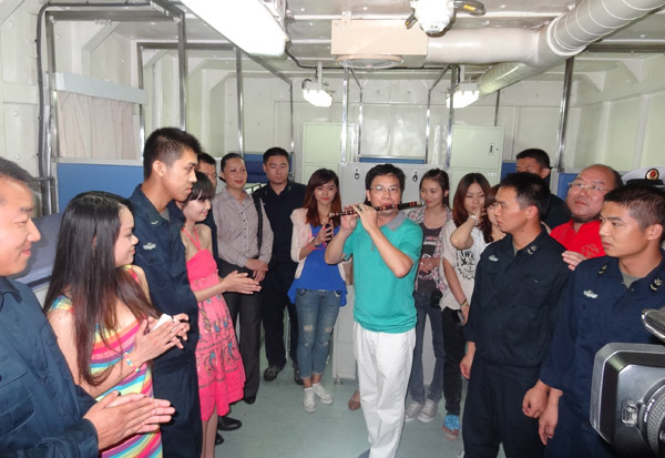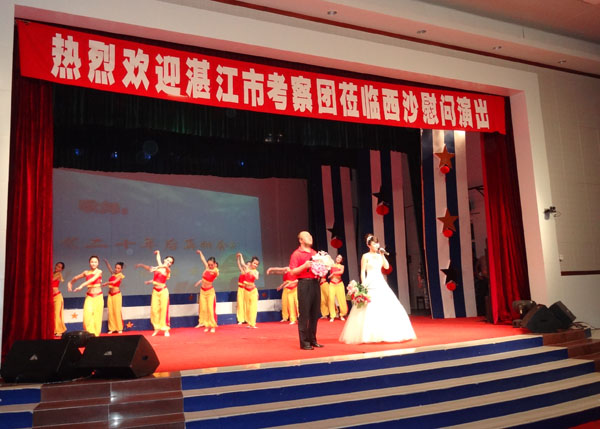 湛师新闻网6月20日讯 6月16日至19日,湛江市委副书记、市长阮日生带领我市拥军慰问团深情慰问西沙驻岛部队,慰问团受到广州军区副司令员兼南海舰队司令员蒋伟烈少将、南海舰队政治部副主任陈俨少将等官兵的热烈欢迎。我校团委李粤书记、音乐学院刘福瑞院长、舞蹈系朱培科主任等领导老师和学生一行15人受邀一同前往,为岛上的士兵们带来了一场精彩纷呈的演出。