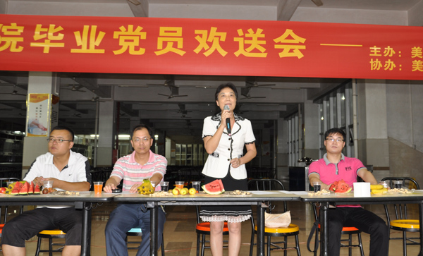 会议伊始,美术学院党委李爱群书记致开幕词,她对毕业生党员四年来为学院所作的贡献表示了感谢,并嘱咐毕业生党员们无论身在何处,都要时刻铭记着自己是一位党员,牢记着党的宗旨和党员应有的权利和义务,积极发挥模范和排头兵的作用;要树立终生学习的楷模,活到老学到老,做学习的先锋,并要敢为人先地在工作岗位中创出成绩,走向成功与辉煌。