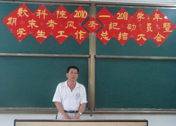 湛师新闻网6月19日讯 今天下午,数科院在榕燕楼401教室召开2010-2011学年期末考风考纪动员暨学生工作总结大会。出席大会的有党委吴华明书记、辅导员全光华、卜秋香和杨洁老师以及全体院干和08-10级的班长。