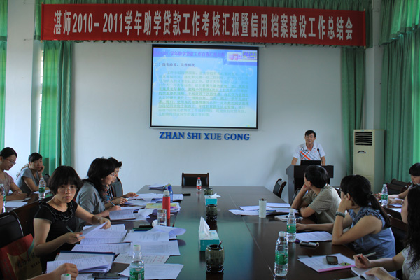 随后,各二级单位负责学贷工作辅导员老师以PPT的形式从学贷工作的基本情况、健全体制建设、加强宣传教育、规范贷款管理、正视成绩与改善不足等方面作了汇报了这一学年的学贷和信用档案建设工作情况。各二级单位分享了在贷款的宣传和管理上的特色与创新做法,如人文、信息、法政等学院根据自身情况,编写了贷款指南和工作汇编;化学院协调使用励志奖学金与助学贷款,使贷款预测零误差率;外国语学院增设了微博、博客等渠道跟进贷款毕业生诚信还款;美术学院结合专业特色开展诚信海报展、诚信书法笔会等诚信教育活动;基础教育学院举办《诚信伴我远航》助学贷款短信编写比赛,使诚信教育深入每位贷款生心灵;数科院用ISSI软件建立贫困生档案库,实行动态管理。