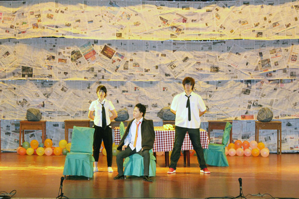 在接下来的话剧演出中,演员们用精彩滑稽的语言、富有变化的表情、夸张到位的肢体语言及眼神交流,融合精湛的表演艺术饰演着一个个鲜活的角色。剧中跌宕起伏的音乐和扑朔迷离的灯光效果,将剧中人物的内心世界展露无遗,给现场的观众带来了一场丰盛的视觉听觉盛宴。