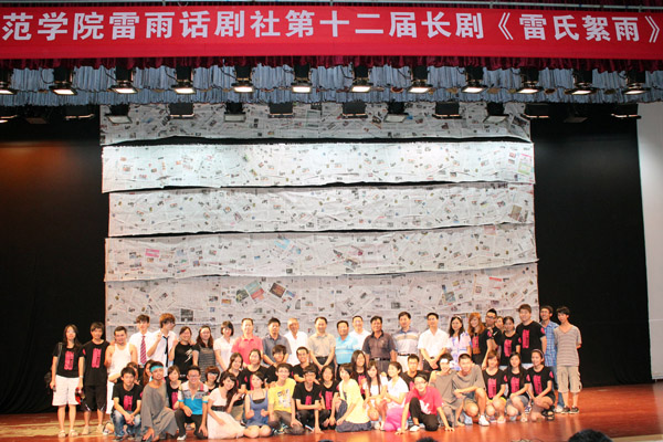 链接:雷雨话剧社走过了十一个春秋,它成立于1999年6月,时至今日,雷雨话剧社连续4年获得校级优秀社团称号,并在2008年获得省级优秀社团,学校星级社团称号。《雷雨》、《恋爱的犀牛》、《卡布奇诺》、《禁闭•戈多》、《古镜》、《暗恋桃花源》、《有间客栈》每一出大型的话剧公演都受到好评。其中,长剧《禁闭•戈多》受邀参加“05中国(广州)大学生戏剧节”,并获得“表演奖”,粤西高校话剧首次走向全国。