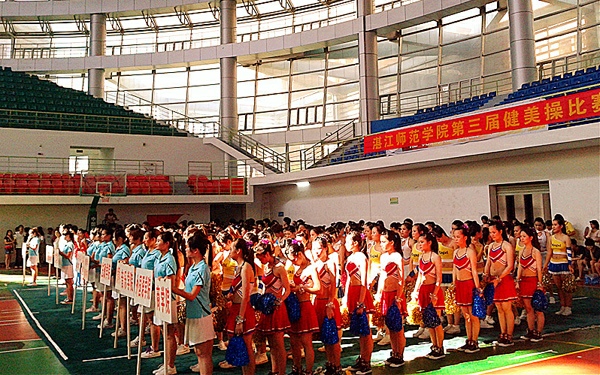 湛师新闻网6月13日讯 青春如梦,缤纷人生。11日早上,由我校体育工作委员会主办,体育科学学院公共体育部承办,健美操爱好协会协办的第三届健美操比赛在校体育馆一楼举行。出席本次比赛的领导有我校学生工作处黄达海处长,博雅中心李赣处长,人文学院冯基聪副书记,数科院唐洪良副书记,体育课学院党委曹巧书记,体育科学学院姚卫宇副院长、欧美珍副院长,博雅中心刘淑珍主任,法政学院莫志明老师。出席的裁判有安剑群老师等。