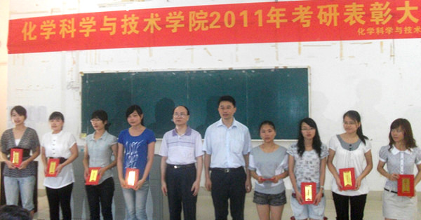 湛师新闻网6月13日讯 6月11日上午,化学院在弘雷楼211教室举行2011年考研表彰暨优秀毕业生经验交流会,化学院院长莫春生教授、化学院党委庄国雄书记、石晓波副院长、王胜副院长,钟明杰副书记等领导和部分老师出席了本次大会。大会由钟明杰副书记主持。