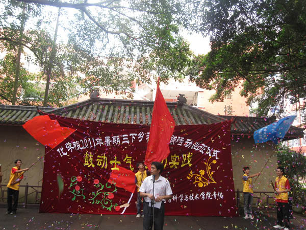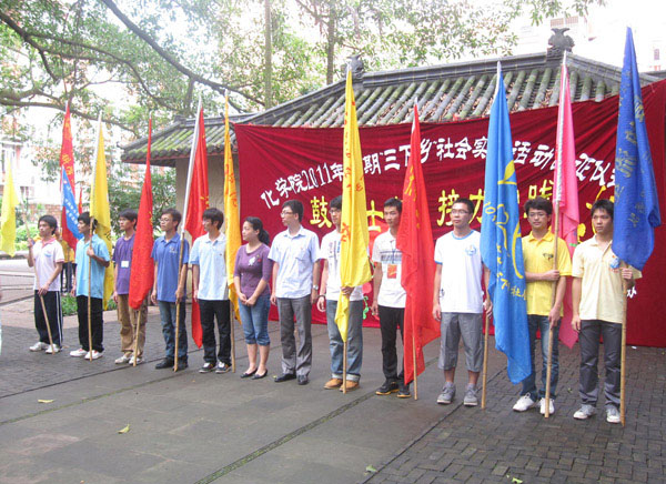 湛师新闻网6月12日讯 今天上午,化学院在古榕广场举行2011年暑期“三下乡”社会实践活动的出征仪式。化学院党委钟明杰副书记、校团委莫然老师、化学院辅导员章晶晶老师出席了此次仪式。