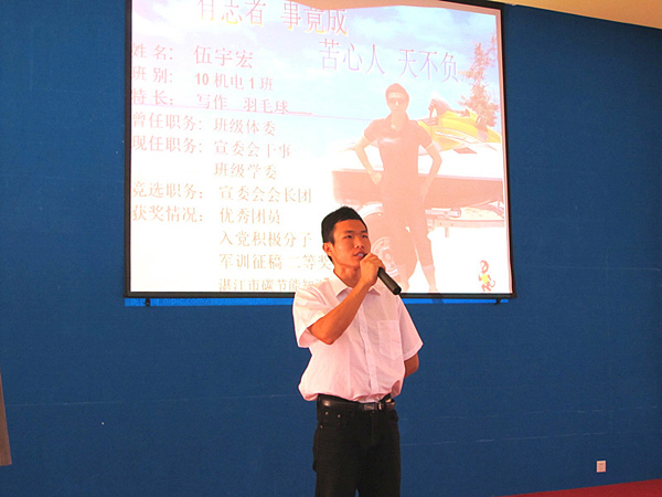 最后,吴万副书记对本次学生干部竞选大会作了总结。他表示对学生干部们在过去一年里的工作表现感到满意和信赖,并鼓励干部们继续以“服务同学,提升自我”为宗旨,发扬历届干部的优良传统,相互学习,严谨对待工作。同时,他对新一届的学生干部给予了厚望。他指出机构之间、干部之间要加强沟通配合,学生干部要加强班集体意识,规范个人的言行举止等不足与要求,并对学生干部们提出了学习不掉队,工作不落伍,结合实际履行职责,并发扬优良传统,树立良好形象,相互联合,相互学习,共同进步等希望。