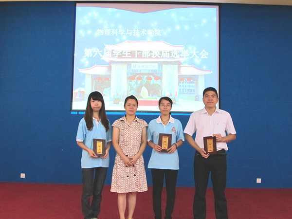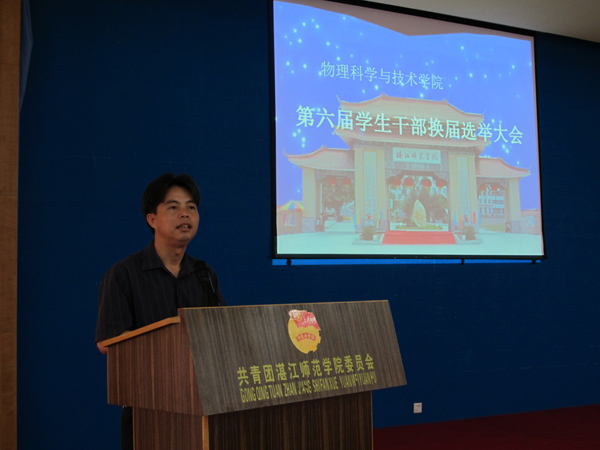 湛师新闻网6月12日讯 为提高物理学院学生干部的服务能力和管理水平,更好地开展各种活动,昨日上午,物理学院在弘雷楼311室举行了第六届主要学生干部换届选举大会。物理学院党委吴万副书记,辅导员梁碧斐老师、郭莉敏老师、屈云老师、易贤老师出席本次大会。