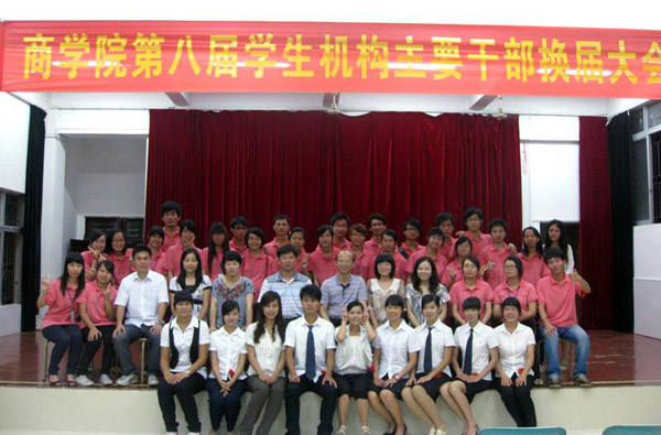 湛师新闻网6月5日讯 6月3日,商学院在艺术楼A栋音乐表演室举行第八届学生机构主要干部换届大会。该院党委吴进书记、梁晋副书记以及辅导员张彦老师、董芬老师和李春霞老师出席大会。