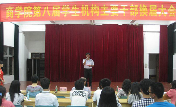 接着,商学院第七届团委的秘书长与学生会主席也上台发言,与大家分享了过去一年工作的感人点滴并对下一届的干部们寄予期许。