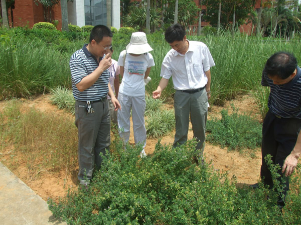 在种植区,邵副院长一眼认出从北方引种的紫花苜蓿,当他了解到这个温带牧草之王已在湛师连续生长多年后,点头赞许;高达2-3米的丛生皇竹草也引起他的关注,详细询问了功能、产量与生长状况。