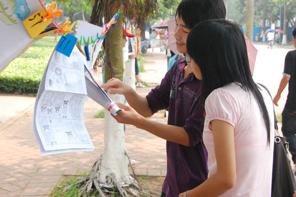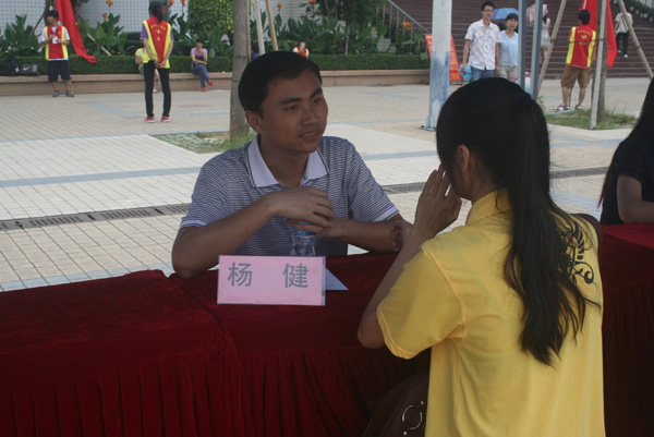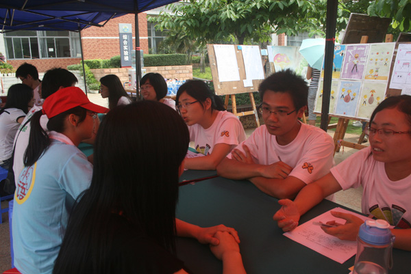 本次活动现场共分为五大区,分别是心理咨询区、心理测试区、心理游戏区、心理知识展览区和心理漫画展览区,心理咨询区又分为专家咨询区、朋辈咨询区。活动还没开始就聚集了不少前来参与的同学,心理咨询区是学生参与度最高的一个区,尤其是广东海洋大学心理咨询中心陈芳蓉老师、湛江教育学院心理学老师黄丹媚、我校体育科学学院辅导员刘天明老师、商学院辅导员李春霞老师以及心理咨询中心杨健老师组成的专家咨询区。同学们都十分珍惜这次向在场老师倾诉内心心理困惑的机会。大多数参与的同学表示经过与老师的谈话,他们的心理困惑和心理压力都得到了不同程度的缓解。除咨询区外,心理漫画展区人气也较旺。前来观赏心理漫画的同学络绎不绝,不少同学还投出了他们手上神圣的一票,据观赏的同学反映,此次心理漫画展不仅作品质量高而且在看过后大多能引起心灵深处的震撼和共鸣。并希望以后能够有多点这样的心理漫画展,表示通过参与活动或游览展板上的内容,获取了不少有益的心理知识。