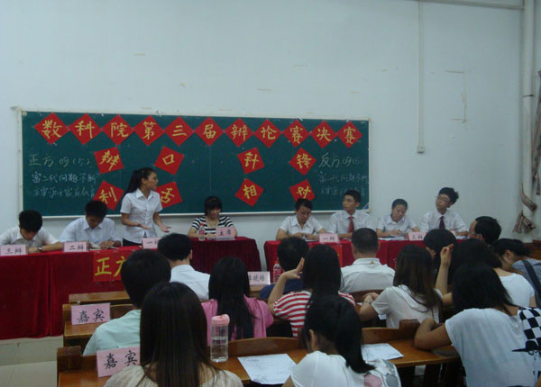 湛师新闻网5月30日讯 辩口利舌,争锋相对。28日晚,数科院在弘雷楼108教室举行第三届辩论赛决赛。数科院李晓培院长、党委唐洪浪副书记出席了本次大赛。人文学院的宋立民教授、何宇红老师,法政学院的张永义老师受邀担任本次大赛的评委。