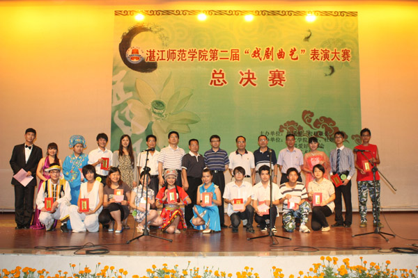 湛师新闻网5月29日讯 为了祝贺我党建设90周年华诞,充分体现大学生对真善美的向往和对社会现象的关注,提高我们师范生的演讲、表演技巧和普通话水平,今早,由共青团我校委员会、我校学生社团联合会主办,人文学院学生社团联合会、朗诵艺术团,以及演讲爱好者协会承办的、主题为“我的青春献给党”的第二届“戏剧曲艺”表演总决赛在音乐厅举行。学校领导李江凌副院长、校党委宣传部陈恕平部长、校团委李粤书记、人文学院党委谢应明书记、校团委李发武副书记、人文学院党委冯基聪副书记出席本次比赛。学校学报常务副主编宋立民教授、学校博雅教育中心蒋金晖副主任以及音乐学院杨佳蓉老师担任这次决赛的评委。