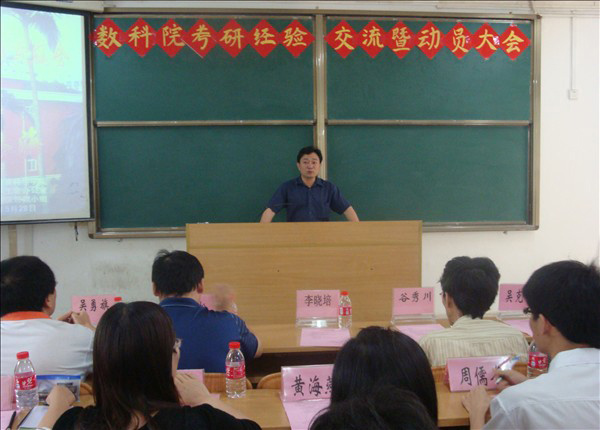 大会伊始,李院长为活动致辞。他提到,数科院今年在考研方面取得了重大突破,其中,有14人考上研究生,接近去年的3倍,这成绩证明了学院在这方面的考度重视与努力。李院长对考研成功的学子们表示衷心的祝贺。他认为,考研是积聚知识财富的过程,是当今社会提升就业的形势所趋。他还希望,更多的大学生加入考研的队伍中,通过考研提高思维方式,培养研究能力,实现生命的价值。