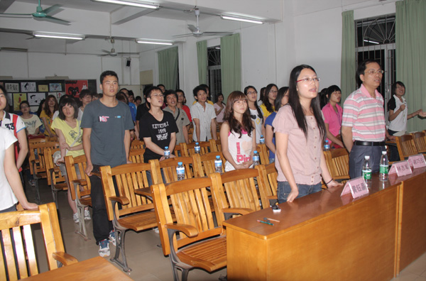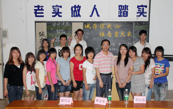 接着,现场开展了一系列主题鲜明、与专业特色紧密结合的诚信教育活动。如现场展示并观赏诚信海报设计大赛获奖作品、书写诚信对联、泰国友人吉他伴奏、干部与贷款生互动抢答、速写表演、《感恩》小品等,其中,与泰国友人交流掀开活动高潮,中泰交流诚信知识,共同提高诚信的意识。节目最后,和着轻盈的手语节拍,师生全体起立,饱含深情地合唱《感恩的心》,活动在深情的主旋律中结束。