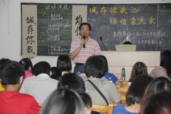 湛师新闻网5月29日讯 为进一步强化贷款生的诚信感恩意识,让贷款生更加了解国家助学贷款知识,昨晚,由美术学院举办的“诚存你我心,维信靠大家”诚信感恩教育活动在咏雷楼203教室举行。美术学院党委林志军副书记、辅导员黄钰晶老师、学贷中心助理、勤工干部及全体贷款生参加了此次活动。