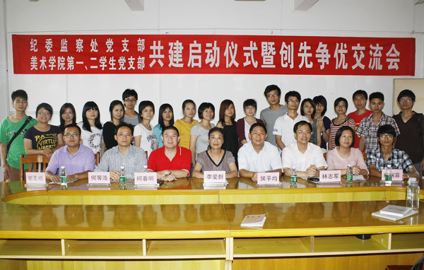湛师新闻网5月26日讯 昨日下午,校纪委监察处党支部与美术学院第一、二学生党支部在美术学院会议室举行了共建启动仪式暨创先争优交流会。美术学院党委李爱群书记,学校机关党委柯春明副书记,纪委监察处党支部书记侯平均副处长,美术学院党委林志军副书记、辅导员谢圣明老师以及三个党支部党员出席了本次活动。