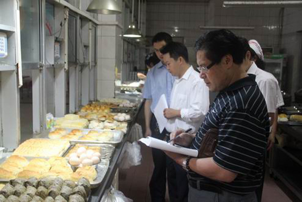 在考核过程中,刘彪总经理对各餐厅里的早、日餐品种进行了细致认真的检查指导。他向员工们详细了解各品种的情况,肯定了做得好的品种,同时指出了一些品种存在的不足,要求加以改正,并勉励大家努力做好工作。
