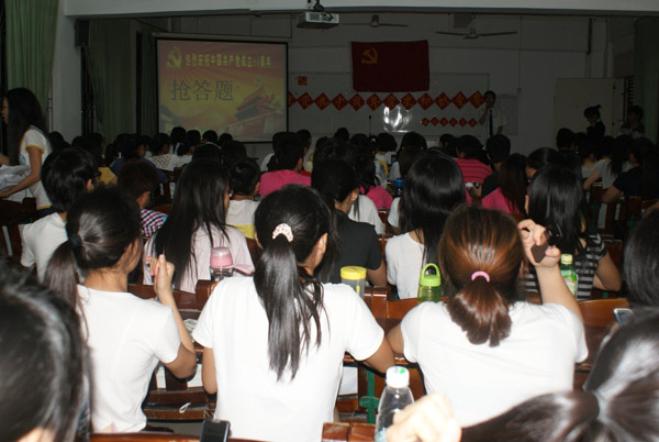 据悉,庆祝建党90周年共有六场系列活动,本次比赛是第三场,分为笔试和现场口答两个环节,获奖名单将在下一阶段活动中公布,并且根据拉拉队的口号、精神面貌及会场纪律,还会评出最佳组织奖。