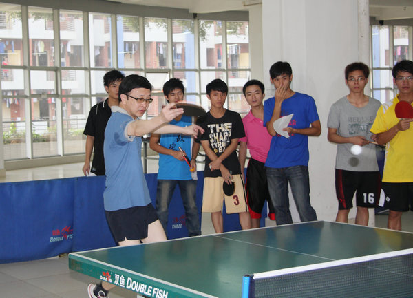 当天早上,李江凌副院长穿着运动便装,同学们在鸿园三楼乒乓球室一起打乒乓球。在休息的时候,李副院长还与同学们一起分享打乒乓球的技巧。赛后,同学们纷纷表示李副院长平易近人,十分关心他们平时的体育锻炼情况,让他们很感动。