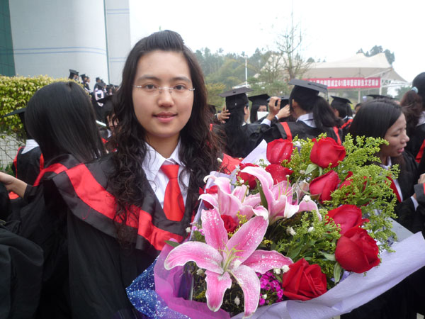 她说她要为自己进行一场革命,为自己创造一个奇迹。于是她一路踏歌随梦,一路上下求索,每一个坚实的脚步留下串串岁月的足迹。吹尽黄沙始见金, 2011年2月1日,她拿到香港中文大学的offer。“把眼泪种在心上/会开出勇敢的花/可以在疲惫的时光/闭上眼睛闻到一种芬芳”她哼唱这首歌时,嘴角微笑上扬。