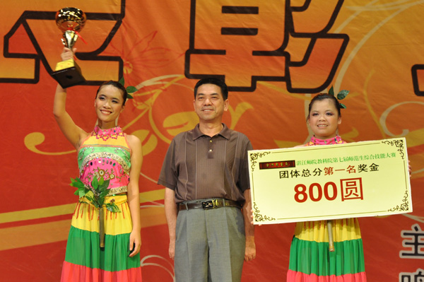晚会的最后,湛江教育局基础教育科陈献科长为晚会做了精彩的总结,他高度赞扬了该院师范生综合技能大赛及相关培训实践项目,并提出了殷切的希望,希望通过表彰,能够切实引导、鼓励师范生关注自身技能发展;也希望同学们能继续努力,加强综合技能训练,在比赛中提升自我,为就业增加砝码;更希望教科院师范生综合技能大赛能越办越精彩,充分发挥积极作用,取得更大的成功。