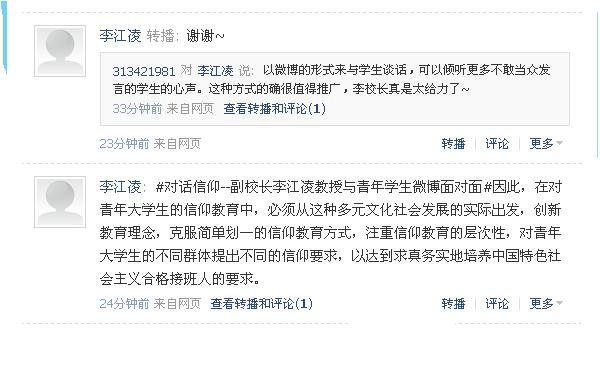 ——我校李江凌副院长与千名青年学生微博面对面