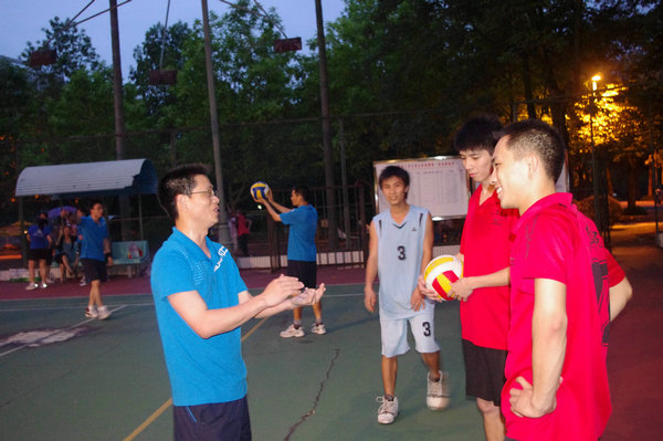 冯副书记在入住第二天傍晚便与该院学生举行了排球友谊赛,冯副书记指出,对于喜欢运动的学生来说,师生间交流的最佳场所通常都是在运动场上。因为在球场上,没有等级之分,只有公平的竞技,在这公平竞技的平台上,师生之间才能真正做到敞开心扉,进行交流。运动是快乐的,是没有身份与距离的,冯副书记还当场向学生虚心请教球技。运动过后,冯副书记比较深入地了解到该院排球队队员的情况,深深地感受到了队员们夺得“三好杯”冠军的来之不易,他表示为人文院的排球运动员感到骄傲。