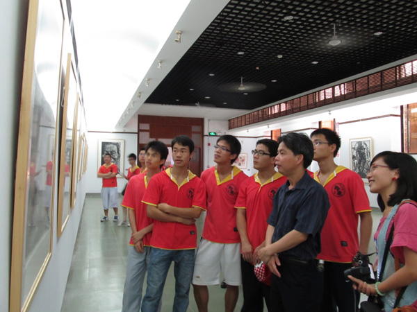在参观过程中,吴万副书记给同学们当起了讲解员。在参观木刻画时,吴副书记与同学们认真地品味每一幅画,并体味其中的意境,随后各自发表感想,交流意见,使同学们深深地领会到了木刻画的魅力与价值所在。吴万副书记还激情洋溢地给同学们讲解了博物馆里的英雄人物的英雄事迹。此外,吴副书记还以个人丰富的人生阅历向大家详细介绍了神秘诡异的湛江傩舞,形象各异的雷州石狗,造型奇特的吴川飘色,形神兼备的廉江舞鹰雄,独具特色的粤西白戏,栩栩如生的吴川泥塑,惊心动魄的麒麟村爬刀梯等富有湛江特色的习俗文化,使同学们大开眼界,受益匪浅。