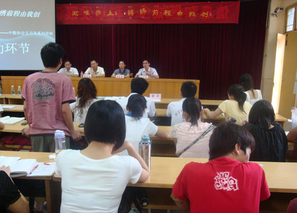 陈振伟书记通过比较以前与当今的就业形势,进一步详细地讲解了同学们在招聘时撰写求职书,笔试,试讲,面试等方面应注意的问题。特别的,他提到,在面试时,同学们不但要做好就业相关知识方面的准备,也要准备好技能、普通话、书写和文章等方面知识。