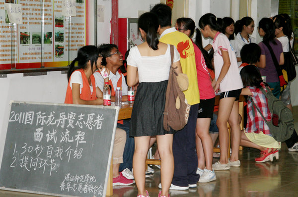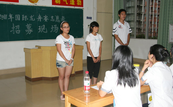 湛师新闻网5月24日讯 为了推动龙舟运动的发展,弘扬中华优秀传统文化,5月22日,我校广大学子积极响应号召,参加2011年湛江海上国际龙舟邀请赛志愿者招募活动。