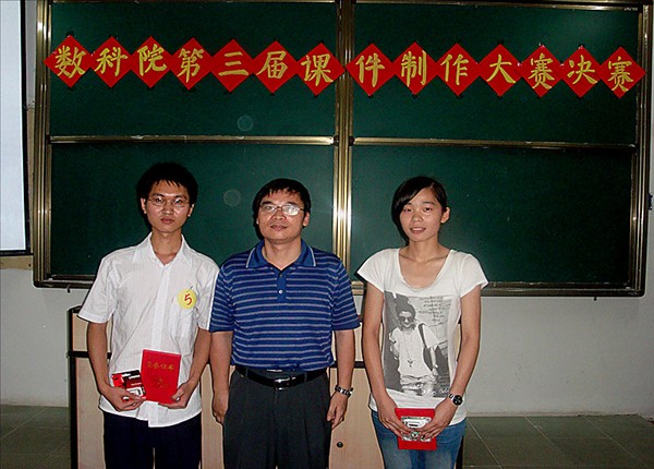 湛师新闻网5月23日讯 5月21日晚,数科院于榕燕楼401教室举行以“点睛•师情”为主题的第三届课件制作大赛决赛。数学系主任刘小松教授、徐鹏老师和信息学院干部代表担任本次比赛评委,数科院辅导员全光华老师和卜秋香老师出席了本次决赛。