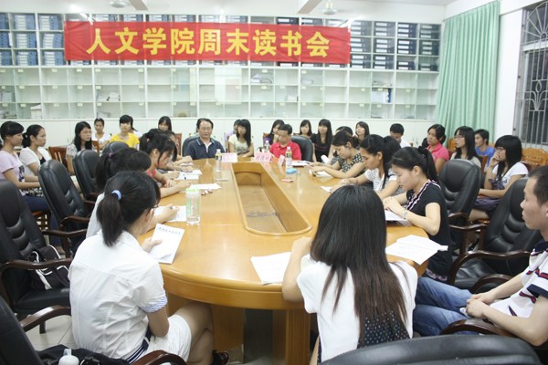 湛师新闻网5月22日讯 以文学节为契机,为增强学术文化氛围,提高学生文学素养,丰富学生课余生活,以不同形式拓宽学生知识面,提高学生学术素养。由共青团湛江师范学院人文学院委员会主办、人文学院团委学术调研部协办的人文学院第二期“周末读书会”暨当代大学生重读红色经典之《青春之歌》研讨会昨晚在弘雷楼四楼会议室举行。人文学院熊家良院长、张德明老师和辅导员詹绍姬老师出席了研讨会。