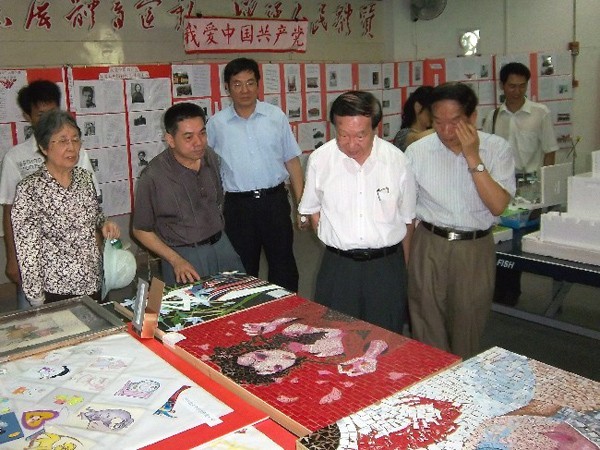 开幕式结束后,梅树德主任等在我校领导的陪同前往燕岭阁二楼东展厅参观展览作品。梅树德主任和湛江市关工委领导对展览作品赞口不绝,感叹我校学子心灵手巧、勤奋好学。最后,梅树德主任等领导为这次展览会现场题字,称本次展览值得各单位学习和推广。