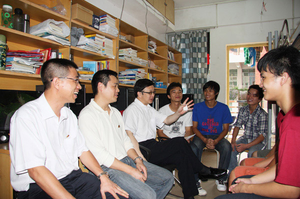 作为全省高校首位校级领导率先垂范,入住学生宿舍开展“两进三同”活动,李江凌副院长在与舍友们的交谈中谈到,深入基层开展“两进三同”这一活动是进一步响应、落实团省委对“两进三同”工作的号召的具体举措,也是进一步发扬我党坚持与人民群众密切联系的优良传统的要求。他表示,我校“两进三同”工作一直走在全省前列,受到了团中央以及团省委的高度肯定,作为分管校团委的校领导,希望以身作则,亲身参与“两进三同”活动,以此带动全体政工干部深入了解青年学生,在工作中提高政工干部的工作作风,探索富有湛师特色的育人新模式。