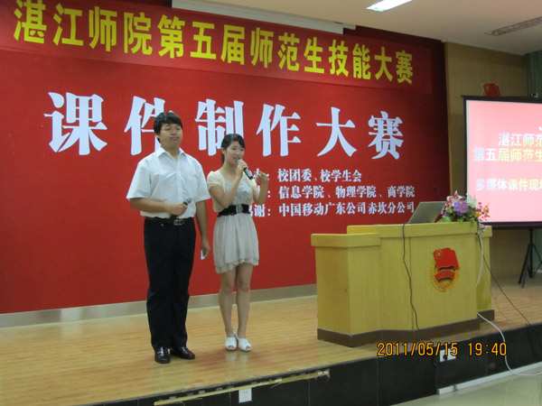 湛师新闻网5月18日讯 5月15日晚,由校团委、校学生会主办,物理学院、商学院及信息学院承办的课件制作大赛现场展示于鸿园四楼学术报告厅举行。校团委李发武副书记出席了比赛,体科院谢洪昌、信息院陈霞、商学院梅晓仁三位老师担任了大赛的评委。