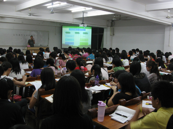 接着,王科长详细地分析职业规划书的五大结构,第一是自我认知,这是职业规划的基础。他指出自我认知的途径有很多,例如学校的招生与就业处主页的郎途职业测评和网络上各种各样的自我认知测评。第二是职业认知,他在场纠正了学生一些关于职业认识的常规性错误定位并列举了几个途径进行职业认知,例如生涯人物访谈和校友经验总结,更好地从身边的人身边的事去了解。第三是目标确立,在以上的两个基础上,我们结合自身实际的优劣势、机会因素和威胁因素来选择和确定自己喜欢的职业方向。第四是计划实施,通过现今所学专业和自身喜欢的额外专业学习,在大学争取更多的社会实践机会来为简历而作好铺垫准备。第五是修改反馈,通过一系列的认知和实践之后,必须针对自己的实际情况重新作出评估,不断地进行调整从而建立几个备选方案。