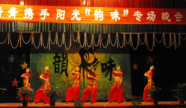 其中,踏青表演艺术团与阳光表演社携手举办的庆祝建党90周年“韵味”专场文艺晚会掀起了学院学生社团庆祝建党90周年活动的高潮。