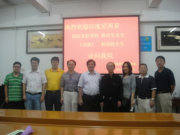 湛师新闻网5月15日讯 昨天下午,人文学院在弘雷楼四楼会议室举行了印尼《讯报》招聘交流会。国际友好学院陈民生先生、印尼《讯报》报社社长林荣胜先生、国际交流处郑志军副处长、外国语学院胡明亮教授、印尼语教师蔡秉擁老师、营养科学与技术系主任赖小玲老师以及人文学院熊家良院长、党委谢应明书记、新闻系姚远主任、郑军博士、该院办公室主任吴义庄老师、辅导员黄河老师参加了交流会,会议由熊家良院长主持。
