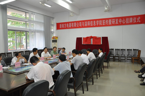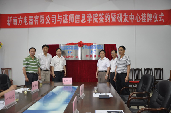 最后,信息学院与湛江市新南方电器有限责任公司进行了合作签约及研发中心挂牌仪式。