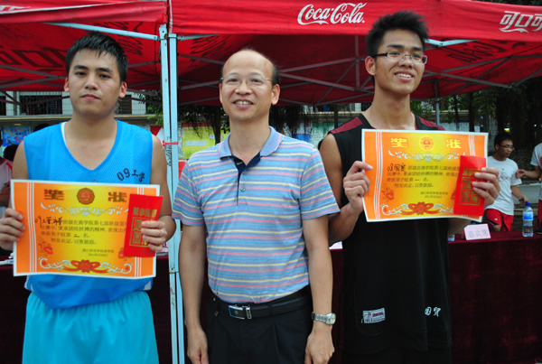 最后,该学院党委吴进书记、张彦老师、李春霞老师为在本届班际篮球赛的获奖队伍颁发奖状和奖品。