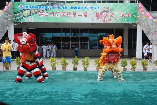 湛师新闻网5月9日讯 激情夏日,百花齐放。昨日下午,我校在体育馆前举行了第九届“五月风”社团文化节开幕式暨第二届“精武会”表演。学校李江凌副院长、校团委李发武副书记、体科院党委曹巧书记、姚卫宇副院长、欧美珍副院长和杨子江副处级辅导员等领导老师出席活动,众多学子顶着烈日观看,现场热闹非凡。